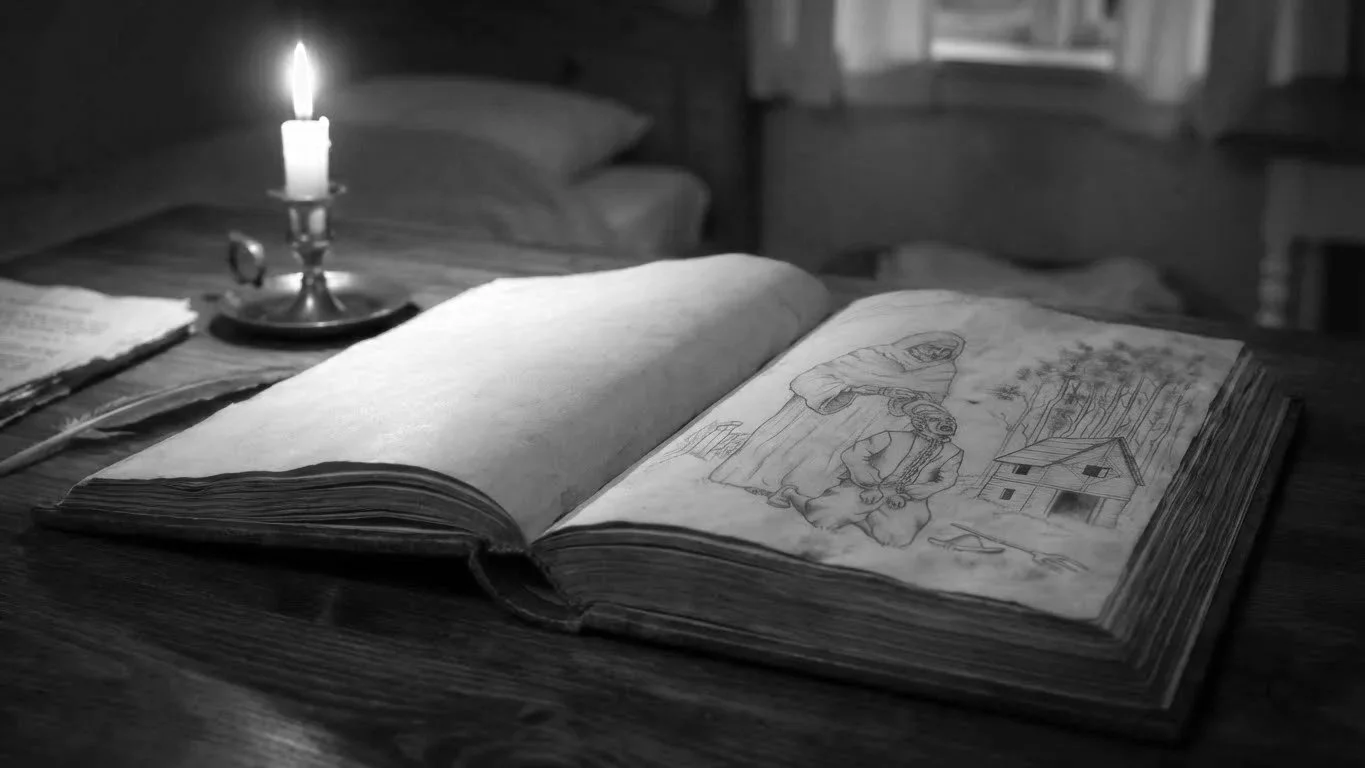 A bound volume recovered from the residence of the missing woman. The book contains handwritten text, symbols, and illustrations inconsistent with modern notation. No publication date or author attribution could be verified.